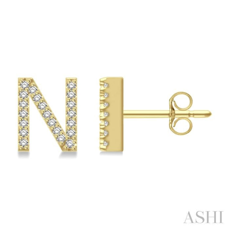 1/8 Ctw Initial 'N' Round Cut Diamond Earrings in 10K Yellow Gold