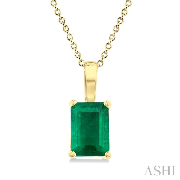 7X5MM Octagon Shape Emerald Precious Solitaire Pendant With Chain in 14K Yellow Gold