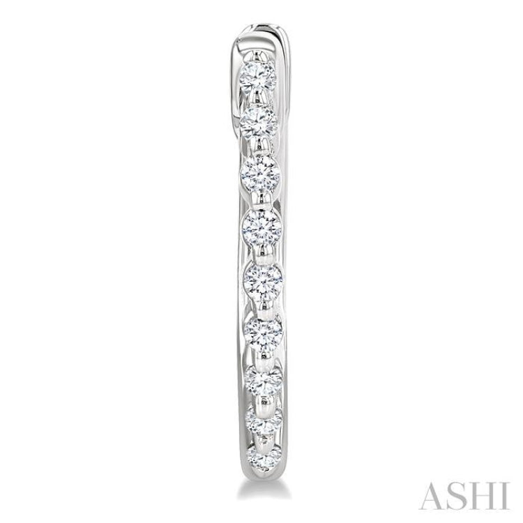 1/6 Ctw Petite Shared Prong Round Cut Diamond Hoop Earring in Sterling Silver