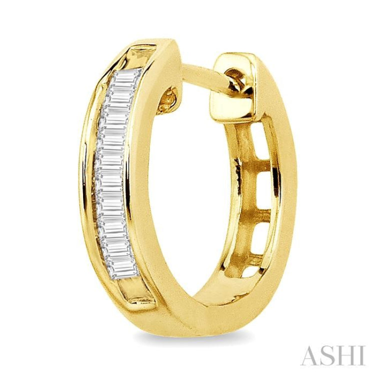 1/10 Ctw Baguette Cut Diamond Huggie Earrings in 10K Yellow Gold
