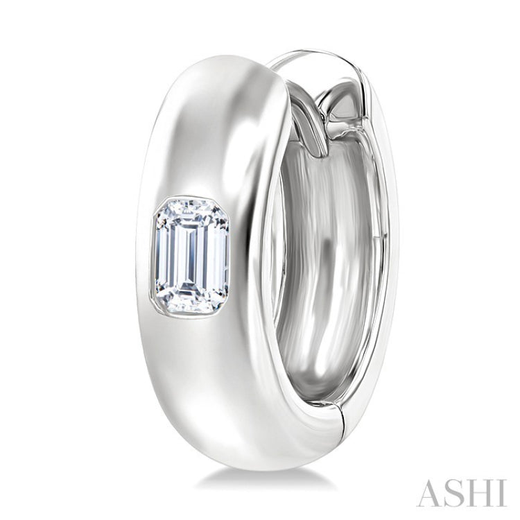 1/3 Ctw Bezel Set Emerald Cut Diamond Fashion Huggie Earrings in 14K White Gold